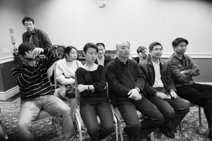 在昨天的媒體見面會上,CNN、全國廣播公司、美國國家公共電臺等主流媒體全都到場,當(dāng)?shù)厝A人媒體、中國駐洛杉磯部分媒體更是無一缺席。現(xiàn)場媒體人員近100人,但真正的主角——購房團(tuán)成員卻只來了10人左右,稀稀拉拉地坐了兩排椅子,讓電視攝像和攝影記者無所適從。購房團(tuán)成員顯然沒有預(yù)料到媒體這樣的陣勢,每個人都面無笑容,一些成員看到媒體拍攝就急忙躲避。購房團(tuán)成員代表殷國華律師發(fā)言時開門見山地說,實在沒料到會有這么多媒體來采訪,大家都感到有一點壓力。
