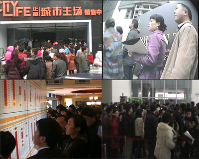 2009年11月28日,星期六的早晨,當很多人還在睡夢中的時候,位于成都市錦江區(qū)的牛沙路已經熱鬧起來。今天是這個叫做鎦金歲月樓盤開盤的日子,上午不到8點,購房者就已經排起了長龍,浩浩蕩蕩的隊伍一眼望不到邊。而在簽到處,不斷地還有購房者趕來。