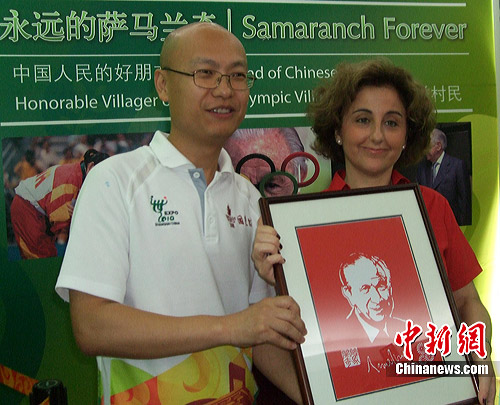 薩翁出生地巴塞羅那的世博展館,正好在國奧村案例館的對面,當(dāng)天也引來不少中國游客緬懷薩翁,F(xiàn)場,薩翁與中國國家主席胡錦濤的合影、薩翁1992年6月16日傳遞奧林匹克火炬等圖片吸引不少參觀者流連駐足。
