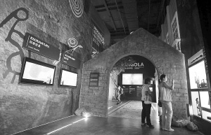 安哥拉館注重用多種元素表達(dá)土著文化,比如館內(nèi)墻上有反映土著人生活場景的巖畫。在安哥拉,巖畫是當(dāng)?shù)厝讼猜剺芬姷乃囆g(shù)門類,遍布安哥拉從北到南40多個(gè)地區(qū),內(nèi)容以動(dòng)物、人物及各種場景圖案為主。