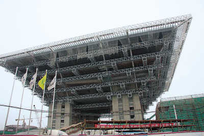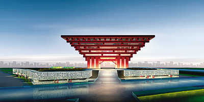中國國家館以“東方之冠”為構(gòu)思主題,取自中國古代木結(jié)構(gòu)建筑中的元素——斗拱。16字設(shè)計(jì)理念體現(xiàn)了中國文化的深厚積淀:“東方之冠,鼎盛中華,天下糧倉,富庶百姓”。主色調(diào)運(yùn)用傳統(tǒng)、沉穩(wěn)的“故宮紅”。世博會(huì)期間,中國館將展現(xiàn)一幅宏偉的城市文明圖。