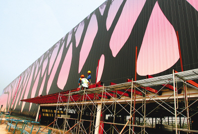 中新網(wǎng)6月12日電 據(jù)上海世博會(huì)官方網(wǎng)站消息,6月11日,上海世博會(huì)非洲聯(lián)合館兩側(cè)外立面的圖案已經(jīng)基本完成。該圖案有關(guān)樹的抽象畫面富有強(qiáng)烈的非洲元素和特征。