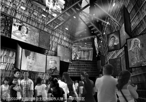 進入家庭展區(qū)后,觀眾滿眼都將是這些家庭成員的影像,這些影像由投影機投射到許多鏡子上,再互相反射,呈現(xiàn)“無處不在”的感覺。在工作展區(qū),一個屏幕可以自動旋轉(zhuǎn),用來表現(xiàn)六個家庭的不同工作情況。在交往展區(qū),則把六個家庭的社會交往情況投射到天幕上。展區(qū)屋頂上垂下一條條桿子,觀眾觸摸一條桿子,相應(yīng)一條某處的桿子就會發(fā)亮,顯示人們之間交往的感覺。在學(xué)習(xí)展區(qū),將模擬一個很大的書柜,展區(qū)空間會變色,顯示從早到晚的變化。在健康展區(qū),屏幕上將表現(xiàn)各個家庭怎樣從事醫(yī)療、如何維護健康等。展覽結(jié)尾處是六個家庭在屏幕上和大家揮手說再見。