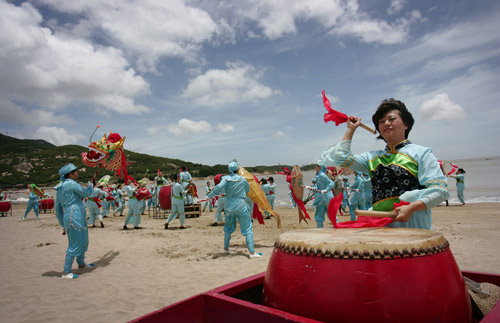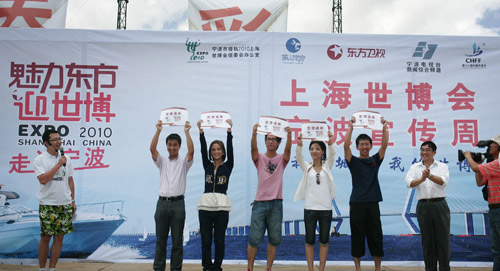 11日上午,“魅力東方迎世博--走進(jìn)寧波”大型直播活動(dòng)在象山松蘭山海灘舉行。直播活動(dòng)全面報(bào)道了寧波市迎接2010年上海世博會(huì)的情況,各類(lèi)主題剪紙表演、專(zhuān)家訪(fǎng)談、小朋友百米兒童畫(huà)、沙灘趣味運(yùn)動(dòng)會(huì)、手語(yǔ)表演、民俗演出等活動(dòng),讓夏日的海灘活力十足。上海世博局國(guó)內(nèi)參展顧問(wèn)黃耀誠(chéng)現(xiàn)場(chǎng)向5位幸運(yùn)市民頒發(fā)了世博請(qǐng)柬,送出了來(lái)年之約。