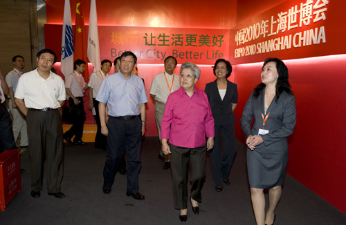 吳儀對展覽內(nèi)容都十分關(guān)注。她仔細(xì)觀看展品,認(rèn)真聽取介紹,并不時向工作人員詢問有關(guān)情況,了解世博會籌備的最新進(jìn)展,對籌辦工作取得的成績給予充分肯定。