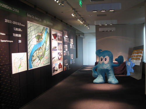 在新設(shè)的“中國2010年上海世博會(huì)宣傳和展示專區(qū)”里,海寶微笑著迎接參觀者。來環(huán)球金融中心的市民可以通過圖片介紹了解世博會(huì),同時(shí)還可隨時(shí)取閱設(shè)在專區(qū)內(nèi)海寶資料架上的世博宣傳品。