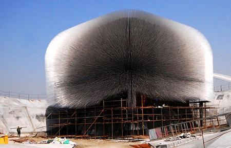 近日,2010年上海世博會(huì)英國(guó)館整體展示方案揭曉。英國(guó)館主體建筑仿佛綠色城市中的一朵“蒲公英”,展示主題定為“傳承經(jīng)典、鑄就未來”,分為“綠色城市”、“開放城市”、“種子殿堂”、“活力城市”四部分展示內(nèi)容。其中,由6萬根蘊(yùn)含植物種子的透明亞克力桿組成的巨型“種子殿堂”,是英國(guó)館的核心展示內(nèi)容。英國(guó)館預(yù)計(jì)4月下旬參與上海世博園區(qū)整體試運(yùn)營(yíng),并于5月1日正式開館。