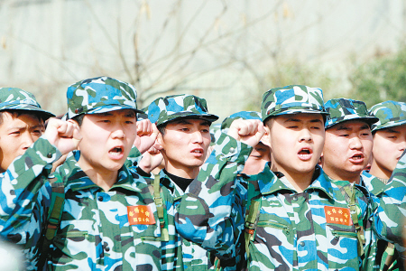 隊(duì)伍第一排中間的保安挺顯眼,白白凈凈,一臉的書生氣。他叫侯澎,今年24歲,剛從西安鐵路職業(yè)技術(shù)學(xué)校電氣自動(dòng)化專業(yè)畢業(yè),為了參加上海世博會(huì)安保,侯澎放棄了專升本的機(jī)會(huì)!案渌(duì)員相比我在專業(yè)技能方面有些差距,但經(jīng)過(guò)三個(gè)月的強(qiáng)化訓(xùn)練,我現(xiàn)在自信十足,恨不得馬上飛到上海!”(王飛 王婷)