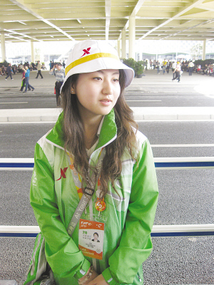 張?bào)蘩霞以诮,是?fù)旦大學(xué)視覺(jué)藝術(shù)學(xué)院的大一學(xué)生,標(biāo)準(zhǔn)的90后女孩。通過(guò)網(wǎng)上報(bào)名并獲得任用后,她成為了上海世博會(huì)首批志愿者,而如果再細(xì)分則可稱(chēng)作“高峰期志愿者”。“每天早上7點(diǎn)半不到就得到園區(qū),晚上下班時(shí)間不定,至少10點(diǎn)以后吧!睆?bào)薷嬖V記者,她每天要做的,就是站在這處位于商業(yè)中心最繁華的街角,為任何有需要的游客提供力所能及的幫助。接受采訪時(shí),女孩才正式上崗短短半日,“已經(jīng)為至少20個(gè)游客指路,或是回答他們的一些咨詢(xún)!