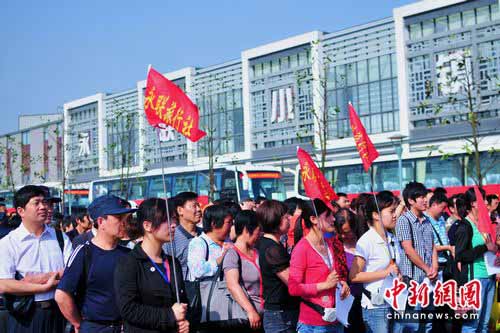 中新網(wǎng)張家港5月25日電(李克祥)“放眼看世界,享受新生活!苯裉烨宄,以此為主題的“萬(wàn)人游世博”在張家港永聯(lián)村正式啟動(dòng),由350名村民職工代表組成的首發(fā)團(tuán),登上開往上海世博園區(qū)的“幸!贝蟀,實(shí)現(xiàn)不出國(guó)門的“出國(guó)”開眼界之旅。
