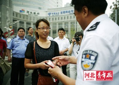 郝召云是一位銷售人員。10日8時她從建設大街拐到中山路,準備倒乘1路公交車。接過市委宣傳部副部長、省會文明辦主任薛建廷頒發(fā)的獎金,郝召云有些激動。