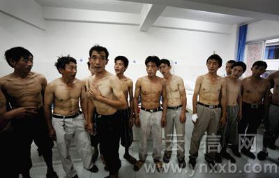 瘦骨嶙峋,根根肋骨外凸。15個赤裸著上身的男子,在病房里排隊照相留念,他們是鹽津縣鹽井鎮(zhèn)的一群矽肺病患者。面對死亡,他們臉上露出幾分苦澀的笑容,最大的愿望就是希望自己能夠活下去。