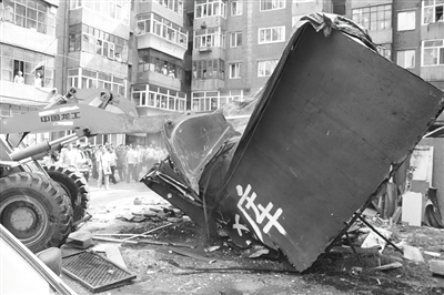 23日14時許,記者隨同80余名執(zhí)法人員來到現(xiàn)場,經(jīng)執(zhí)法人員連日調(diào)查發(fā)現(xiàn),遼陽街57號院內(nèi)共有私建車庫11處,房主不能提供任何審批手續(xù),并拒不自行拆除。當(dāng)執(zhí)法人員調(diào)動鏟車準(zhǔn)備進(jìn)行拆除時,一家車庫的房主將吉普車?吭谲噹烨埃蛔岀P車靠近,并站在車庫門前對執(zhí)法人員進(jìn)行辱罵。其中一名男子更是拿出把30多厘米長的大長砍刀,揚(yáng)言靠近傷到不負(fù)責(zé),并在執(zhí)法人員面前揮舞砍刀,一名執(zhí)法人員受傷。他一邊揮舞砍刀一邊對執(zhí)法人員進(jìn)行辱罵,站在旁邊的3名男女不時地推搡執(zhí)法人員,阻止拆除工作。面對恐嚇和威脅,執(zhí)法人員采取措施將私建房主隔離現(xiàn)場,并調(diào)來拖車將擋在車庫前的吉普車拖離現(xiàn)場后立即開展拆除。隨著鏟車的轟鳴聲,11處侵占居民生活空間的私建車庫被強(qiáng)拆。