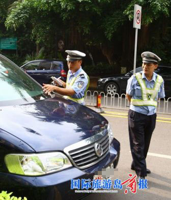 據(jù)在現(xiàn)場的市民李先生介紹,昨日上午,他和朋友開車到古玩一條街閑逛,可因前方堵車,一直無法進(jìn)入,李先生隨即下車走到路口發(fā)現(xiàn),原來有兩輛軍車和一輛省政府公務(wù)車違規(guī)在路邊停車,導(dǎo)致交通堵塞。就在車主們焦急等待的時候,海口交警及時趕來,疏導(dǎo)了現(xiàn)場的交通后,毫不猶豫地對這些違規(guī)停車的“特權(quán)車”及其他私家車開出罰單。(國際旅游島商報 記者王煥娟特約記者李順成攝影報道)