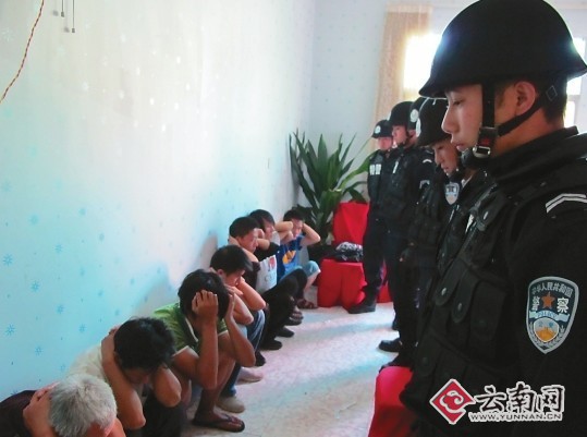 前晚11點左右,昆明市西園路上出現(xiàn)了一條長長的警車隊伍,車上除民警外,還有91名垂頭喪氣的“乘客”。幾個小時前,正在晉寧縣晉城鎮(zhèn)參于賭博的他們,被突然出現(xiàn)的民警逮了個正著。