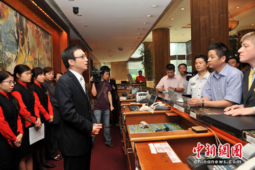 6月20日,重慶希爾頓酒店因股東涉黑,介紹、容留婦女賣(mài)淫,違法經(jīng)營(yíng)和故意擾亂社會(huì)秩序,被重慶警方責(zé)令停業(yè)整頓。今日上午,重慶市公安局副局長(zhǎng)高曉東帶領(lǐng)市局治安、經(jīng)偵、消防、打黑辦等部門(mén)相關(guān)負(fù)責(zé)人組成的檢查驗(yàn)收組,對(duì)重慶希爾頓酒店整改情況進(jìn)行檢查驗(yàn)收。