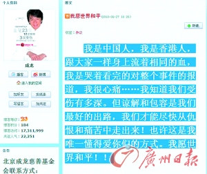 成龍25日的言論在微博上發(fā)表后,隨即在網(wǎng)絡(luò)上瘋傳,在各大網(wǎng)絡(luò)的討論區(qū)都推出了這次成龍言論的專題,網(wǎng)友們紛紛對(duì)成龍表示很不滿。