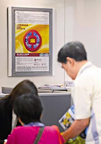 交銀香港荃灣分行昨日設(shè)立特定人民幣債券銷售柜臺,中午時認(rèn)購隊伍至少同時有6人在輪候,要等候30至60分鐘,F(xiàn)場亦有一對老夫婦礙于附近中銀分行出現(xiàn)排隊人潮,專程而來才發(fā)現(xiàn)不能開投資的聯(lián)名戶口。有新客戶到中銀筲箕灣分行買人民幣債券,現(xiàn)場職員提醒,客戶必須闖三關(guān),包括開存款和投資戶口,購買人民幣債券,整個過程要1小時半。渣打及中信銀行國際太子分行,昨午未見有認(rèn)購人潮。