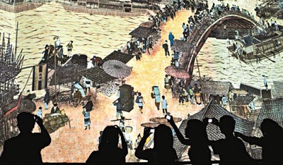 根據(jù)大會安排,每位持票市民有1小時的參觀時間,司徒元杰建議參觀者先花約15分鐘,從頭到尾把百多米的動態(tài)版上河圖“快看”一回,然后利用剩余時間“慢看”自己有興趣的場景,尤其是感受畫卷中的夜景氣氛,“圖中的氣氛彷佛像宮崎駿《千與千尋》中的夜景一樣漂亮,雖說是創(chuàng)作出來,但也是有一定參考依據(jù)的。當(dāng)然大家未必要刻意考究歷史,這樣會有很大壓力,相反單純用看風(fēng)景的心態(tài)去感受,也很值得的。”