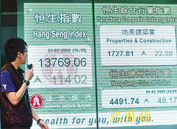 中新網(wǎng)2月10日電 據(jù)香港《文匯報(bào)》報(bào)道,雖然9日上證綜指繼續(xù)上升近2%以及美國(guó)道瓊斯指數(shù)上周五上升217.52點(diǎn),但港股表現(xiàn)則未如市場(chǎng)估計(jì)的理想,在高開210點(diǎn)至13865點(diǎn)后后勁不繼,收市報(bào)13769.06點(diǎn),升114.02點(diǎn),不僅未能突破14000點(diǎn),而且連13800點(diǎn)也未能站定。