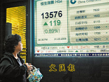 中新網(wǎng)4月1日電 據(jù)香港《文匯報(bào)》報(bào)道,3月31日是港股今年首季最后一個(gè)交易日,大市收升119點(diǎn)報(bào)13576點(diǎn),但首季計(jì)跌達(dá)5.6%,或811.46點(diǎn),跌幅在亞太區(qū)排第3。大市市值蒸發(fā)約2740億元,余下約10萬億元。分析員指出,大市3月份走勢(shì)有好轉(zhuǎn)跡象,但在1.4萬點(diǎn)見阻力,料第二季仍為波動(dòng)市,將在1.3萬-1.4萬點(diǎn)上下。