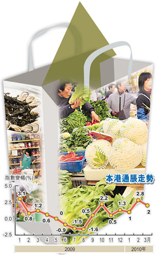 港府發(fā)言人預測,隨著經濟復蘇,未來通脹壓力勢必增加。學者分析認為,種種激化通脹的因素已經逐漸浮現,包括內地旱情持續(xù)、人民幣升值、歐洲航班停航令歐洲產品供應緊張等,預計香港通脹將加劇,今年內或上升2%。