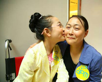 中新網(wǎng)5月11日電 據(jù)香港《大公報(bào)》報(bào)道,汶川大地震毀掉很多人民的理想,奪去他們的肢體,更毀掉不少幸福家庭。來自四川的“芭蕾女孩”李月,10日與母親來香港慶祝她們?yōu)暮蟮谝粋母親節(jié)。失去一條腿的李月表示,沒有準(zhǔn)備什么禮物,因?yàn)楹煤蒙罹褪撬徒o媽媽最好的禮物。