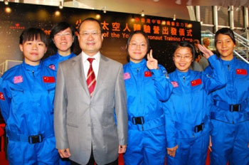 香港中華總商會會長蔡冠深在出席出發(fā)儀式時表示,香港中華總商會在國慶60周年之際,贊助首屆“體驗營”,特別有意義。他說,在“體驗營”出發(fā)前一周,中華總商會還特別舉行了“少年航天員體驗營交流會”,30位少年航天員雀躍地分享了他們從提名參選到出發(fā)前的準(zhǔn)備、感受和期望,充份表現(xiàn)他們熱切追求夢想的干勁。在交流會上,中華總商會向30位少年航天員頒發(fā)證書和紀(jì)念品。
