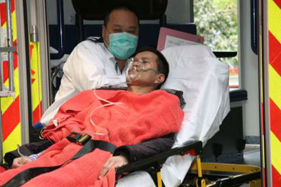 由于擔心醫(yī)療費用,事主在21日晨7時許向醫(yī)生要求出院,之后由朋友協(xié)助駕駛私家車載返香港,并報警求醫(yī),救護車在港鐵九龍?zhí)琳緦γ嫔掣5溃幼呤轮魉屯晾巢t(yī)院檢查診治。