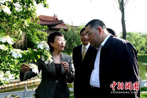會見前,揚州市委書記王燕文向澳門特首崔世安特別介紹在他下榻迎賓館門前的揚州市花—瓊花,瓊花有著“維揚一枝花、四海無同類”的美譽,崔世安在此欣然留影紀(jì)念。