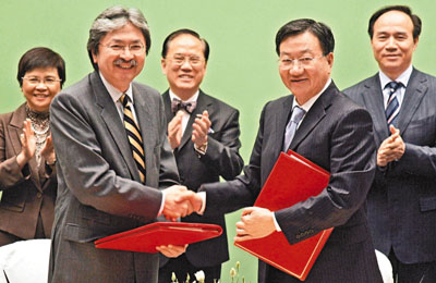 香港財(cái)政司司長曾俊華與國家商務(wù)部副部長姜增偉昨日簽訂CEPA第7份補(bǔ)充協(xié)議,在19個(gè)領(lǐng)域共35個(gè)措施中,其中14個(gè)服務(wù)領(lǐng)域的27項(xiàng)獲開放市場,涉及建筑、醫(yī)療、技術(shù)檢驗(yàn)分析與貨物檢驗(yàn)、專業(yè)設(shè)計(jì)、視聽、分銷、銀行、證券、社會(huì)服務(wù)、旅游、文娛、航空運(yùn)輸、專業(yè)資格考試和個(gè)體工商戶。