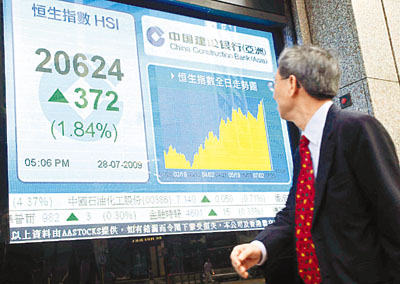 中新網(wǎng)7月29日電 據(jù)香港《文匯報》報道,港股連續(xù)第4天上升,恒指28日早段表現(xiàn)反復(fù),一度回吐142點,午后在中移動等續(xù)炒A股回歸概念股,以及地產(chǎn)股帶動下,才展現(xiàn)升幅,恒指曾經(jīng)高見20664點,升逾410點。最終全日報20624.5點,升372.9點,升幅1.8%,再創(chuàng)“雷曼爆煲”后新高,成交額增至852.5億元。