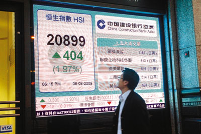 中新網(wǎng)8月7日電 據(jù)香港《文匯報》報道,市場熱炒回歸A股概念,在兩大重磅股中移動、匯控發(fā)力各升7.5%及3.34%支持下,令港股6日未受A股下挫影響,大市從低位20339點開始抽升,并以接近全日最高位報收,收報20899點,升404點,成交884.52億元,不但收復(fù)過去2天的失地,收市更創(chuàng)11個月新高。