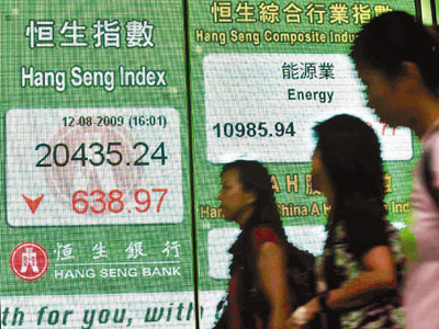 中新網(wǎng)8月13日電 據(jù)香港《文匯報(bào)》報(bào)道,在美聯(lián)儲(chǔ)局公布議息結(jié)果及長(zhǎng)和系13日派成績(jī)表前夕,港股12日受美股及內(nèi)地A股急瀉4.7%影響,失守20500點(diǎn),藍(lán)籌近全線跌,地產(chǎn)股沽壓大,恒指一度低見20417點(diǎn),收?qǐng)?bào)20435點(diǎn),大跌638點(diǎn)或3.03%,為3個(gè)月來最大單日跌幅,大市成交增至750.62億元。