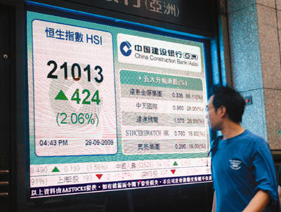 即月期指收21013點(diǎn),10月期指收報20915點(diǎn),低水98點(diǎn)。匯控為升市火車頭,該股曾升穿90元,收市大升2.6%至89.4元。中資金融股和出口股獲追捧,工行升3.3%至5.94元,利豐在憧憬出口復(fù)蘇下,午后破31元52周高位,收市報31.25元,升6.3%,成交3.17億元,升幅為藍(lán)籌之冠。