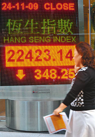 港股24日出現(xiàn)戲劇性變化,上午還保持平穩(wěn),午后內(nèi)地股市突然插水,拖累港股下午急轉(zhuǎn)直下,午后開市即挫200點(diǎn),其后更一度急挫376點(diǎn),曾失守22400點(diǎn),全日收報(bào)22423點(diǎn),跌348點(diǎn),跌幅1.5%,全數(shù)抵銷了周一的升幅,成交額增加至674.6億元。期指臨近結(jié)算,轉(zhuǎn)倉活動也非活躍,期指收報(bào)22472點(diǎn),高水49點(diǎn),成交合約高達(dá)13.5萬張。