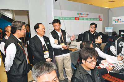 另外,曾蔭權(quán)上周末巡視東亞運(yùn)動(dòng)會(huì)部分比賽場地,了解各項(xiàng)籌備工作并觀看彩排。在灣仔伊利沙伯體育館,特首特別巡視了東道主廣播機(jī)構(gòu)香港電臺的直播中心,了解賽事電視訊號的技術(shù)安排。署理廣播處長梁松泰及助理廣播處長張文新,向特首重點(diǎn)介紹香港電臺為東亞運(yùn)提供的廣播技術(shù)支持及投入的資源。