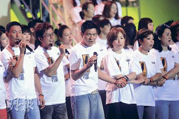 為了支持臺(tái)灣救災(zāi)工作,由香港演藝界發(fā)起,24個(gè)機(jī)構(gòu)及媒體合辦歷時(shí)4小時(shí)的《8•8水災(zāi)關(guān)愛(ài)行動(dòng)》,以歌聲向全球華人呼吁踴躍捐款,到深夜11時(shí)半,未計(jì)現(xiàn)場(chǎng)捐款箱和網(wǎng)上捐款,已籌得善款5090萬(wàn)元。