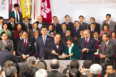 中新網(wǎng)3月17日電 據(jù)香港中通社報道,在最近一項(xiàng)大學(xué)排名位列“亞洲第一”的香港大學(xué),16日為百周年校園舉行奠基典禮。香港特區(qū)行政長官曾蔭權(quán)、中央駐港聯(lián)絡(luò)辦公室副主任李剛、港大副校監(jiān)李國寶,以及李兆基、鄭裕彤、陳祖澤等社會知名人士出任主禮嘉賓。