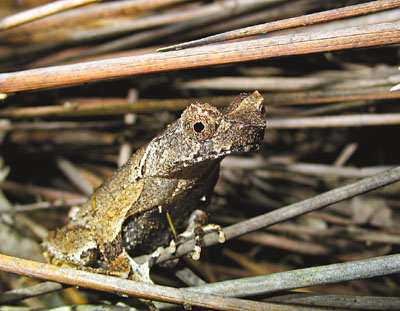 發(fā)掘?qū)W生組“十大熱點”冠軍的蘇樂軒,現(xiàn)就讀香港大學(xué)生態(tài)及生物多樣性學(xué)系,他在一次生態(tài)夜行中,在龍虎山郊野公園發(fā)現(xiàn)愛“夜蒲”的短腳角蟾。他指出,短腳角蟾是香港原生物種,臉上有角,樣子趣怪,多在夜間出沒,雄性更會在每年夏春的繁殖期利用叫聲吸引雌性,已被世界保育聯(lián)盟評為瀕危物種。