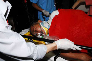 鐘×勝被高爾夫球車壓著,奄奄一息,其余各人除司機(jī)外也受傷,眾人驚魂剛定后實(shí)時進(jìn)行搶救,但4人未能移動車身,只好轉(zhuǎn)向球場控制中心求助,職員接報趕往協(xié)助救援。鐘×勝面色轉(zhuǎn)白氣弱游絲,稱胸部好痛,大家擔(dān)心他可能是內(nèi)傷出血。