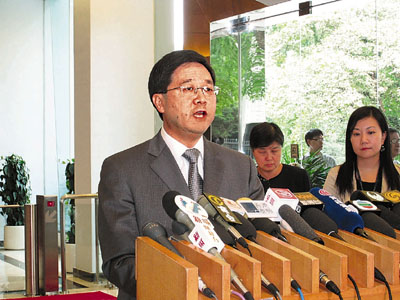 林瑞麟2日在記者會(huì)上表示,特區(qū)政府與臺(tái)灣的所有互動(dòng)和合作,均按照相關(guān)原則去處理,而這次特區(qū)政府首度以官方形式,正式派一名局長(zhǎng)到臺(tái)灣訪問(wèn),也已知會(huì)中央政府。