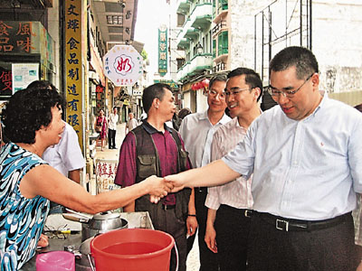 中新網(wǎng)7月15日電 據(jù)香港《文匯報》報道,為了親身了解民情,澳門行政長官候選人崔世安14日巡視多區(qū)的街市和商鋪,了解經(jīng)營情況,直接聆聽商戶的聲音,并與市民“零距離”接觸。