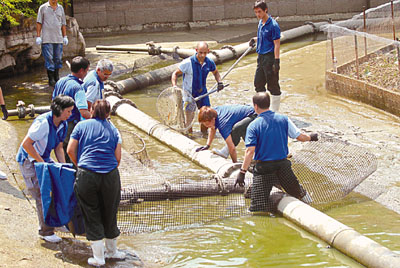 海洋公園8日行先派出專家和工作人員,用圍網(wǎng)和魚網(wǎng)到青衣公園的人工湖,捕捉3條福鱷,及一些不適宜在池內飼養(yǎng)的魚,包括虎頭鯰魚等。