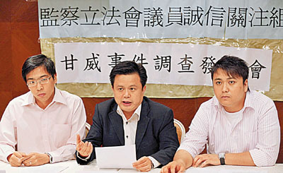 監(jiān)察立法會議員誠信關(guān)注組主席余智榮20日在記者會上指,民主黨一給予人“對道德要求很高”的感覺,因此在甘乃威事件上,有超過80%受訪者認為民主黨應(yīng)開除甘乃威的黨籍,反映大部分市民都認為,只有這樣做才能符合民主黨平日要求的道德標準。