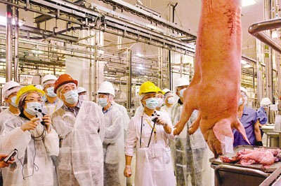 上水屠房5日已加強戒備,保安人員及部分屠房工人均戴上口罩。豬農(nóng)尹偉明表示,已收到有關(guān)單位通知,將加強消毒至每周2次。有工人表示,不擔(dān)心受到感染,會視乎情況決定是否接種甲型流感疫苗。