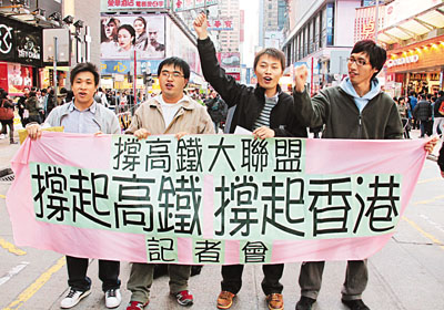 中新網(wǎng)1月14日電 據(jù)香港《文匯報(bào)》報(bào)道,自從廣深港高鐵香港段撥款申請(qǐng)兩度押后,社會(huì)中支持和反對(duì)高鐵的聲音愈來(lái)愈大,正當(dāng)一批“80后”青年通過(guò)苦行形式“反高鐵”,另一邊,一群以生于80年代為主的年輕人已經(jīng)自組“撐高鐵大聯(lián)盟”,將于15日到立法會(huì)外“撐場(chǎng)”。