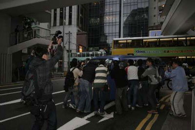 車輛在軍器廠街駛進(jìn)警察總部的路程,原本只需短短一分鐘,因在場守候的記者剛見客貨車駛進(jìn),即蜂擁而上包圍客貨車拍照,結(jié)果車輛花了多達(dá)15分鐘,才能進(jìn)入大廈內(nèi),場面一度混亂,期間警方出動十多名警員在馬路上維持秩序。陳的私人保鏢3日曾尾隨警方車輛駛離寓所,但4日總部現(xiàn)場所見,他們似已再無隨行。