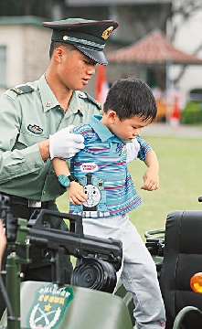 香港2日天朗氣清,不少市民更扶老攜幼舉家前來參觀,有小孩看見雄赳赳的駐港部隊隊伍后,表示會學習官兵們報效祖國的精神。