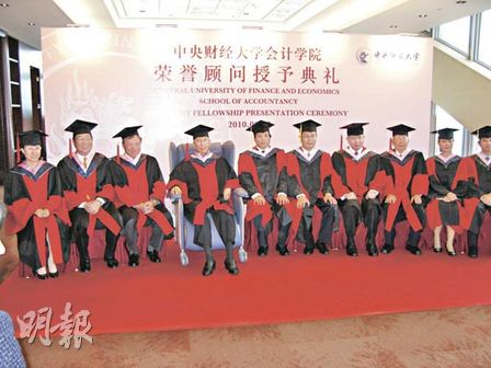 中新網(wǎng)6月9日電 據(jù)香港明報(bào)報(bào)道,“賭王”何鴻燊久病復(fù)出,內(nèi)地中央財(cái)經(jīng)大學(xué)想頒會(huì)計(jì)學(xué)院榮譽(yù)顧問榮銜,校方明白“賭王”的身體狀況,所以中央財(cái)經(jīng)大學(xué)副校長到香港,在信德中心舉行頒授儀式,除“賭王”外,郭炳湘、李國寶、方潤華同馬時(shí)亨都有份接受榮銜。